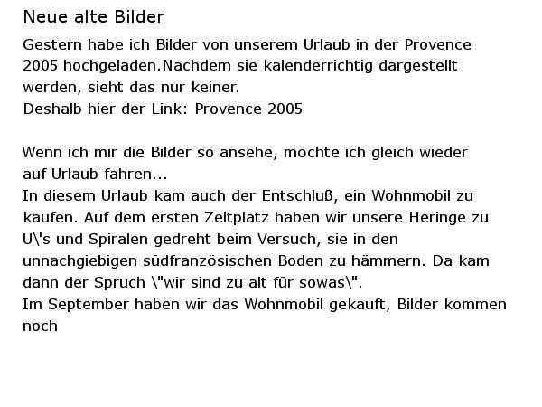 Gestern habe ich Bilder von unserem Urlaub in der Provence 2005 hochgeladen.