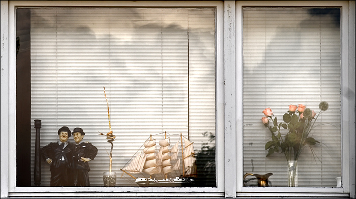 When walking my camera yesterday I found this window decorated with left-overs of the last century.